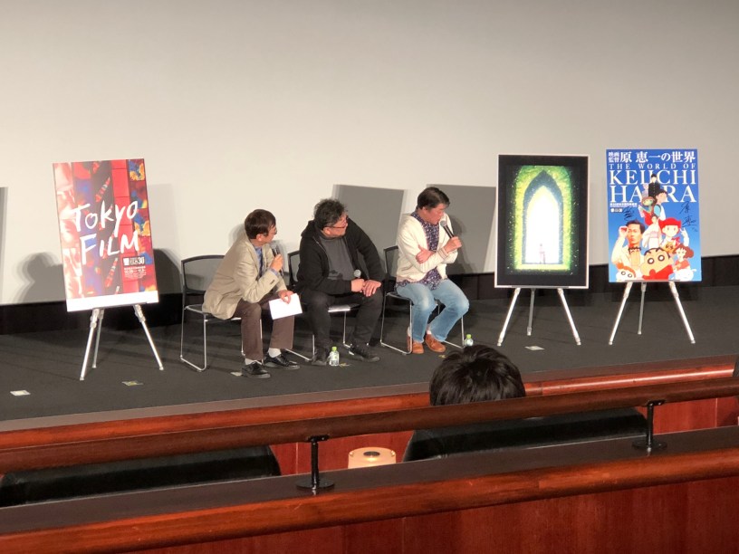 The talk began with a 25-minute discussion about their memories of the Osaka World Expo (seen in the beginning of the film), Higuchi’s love of Hara’s films on the Crayon Shin-chan franchise and Hara’s experiences on it (he drew storyboards for 13 of the films, wrote ten of them and directed six).